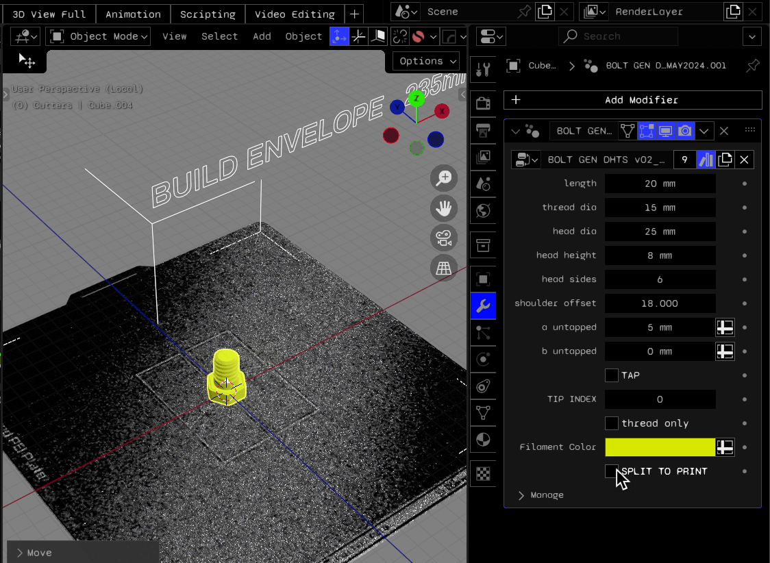Dojo Bolt Gen v05 is a flexible, procedural bolt generator for Blender designed to help makers and 3D artists create precise, customizable fasteners in minutes—optimized for 3D printing as well as digital projects.